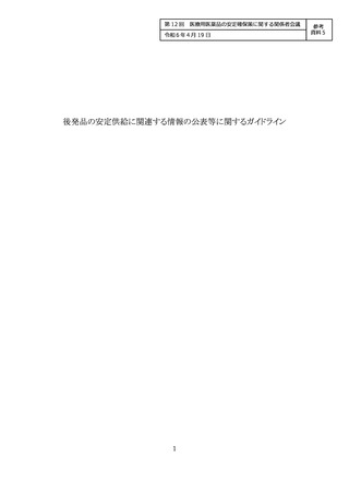 【参考資料5】後発品の安定供給に関連する情報の公表等に関するガイドライン(令和6年3月29日)