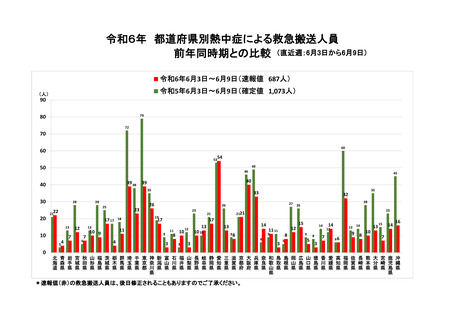 | 出典情報 | 熱中症による救急搬送人員(6月3日-6月9日速報値)(6/11)《総務省消防庁》 |