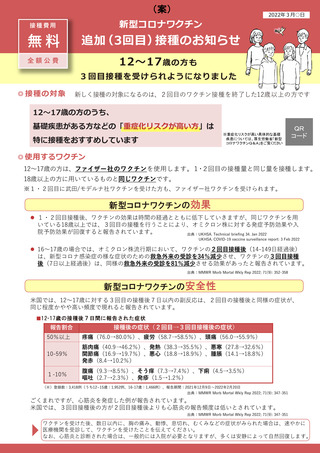 06【資料4】12~17歳の者に対する3回目接種のお知らせ(案)