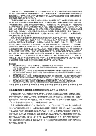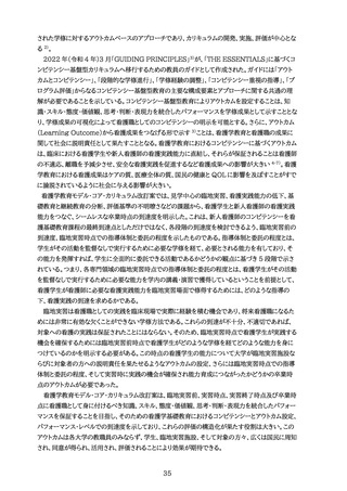 にする必要がある。さらに、看護学教育におけるコンピテンシーは、卒業時点のみならず、卒業後に看