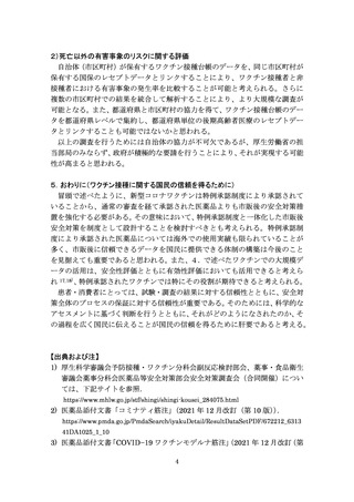 【参考資料5】新型コロナワクチンの安全性評価に関する意見(令和3年12月24日医薬品等行政評価・監視委員会)