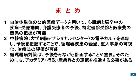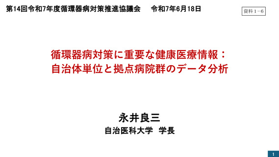 【資料1-6】循環器病対策に重要な健康医療情報:自治体単位と拠点病院群のデータ分析(永井会長)
