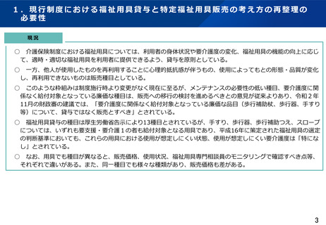 | 出典情報 | 介護保険制度における福祉用具貸与・販売種目のあり方検討会(第3回 4/21)《厚生労働省》 |