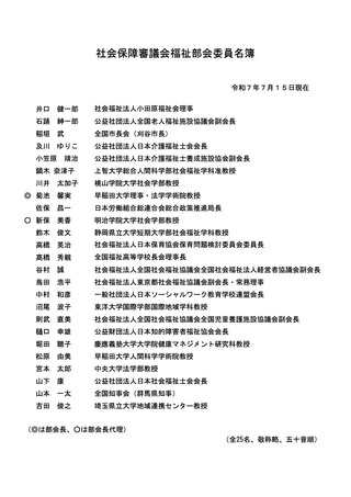 社会保障審議会福祉部会委員名簿