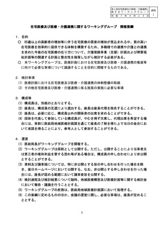 資料1 在宅医療及び医療・介護連携に関するワーキンググループ 開催要綱