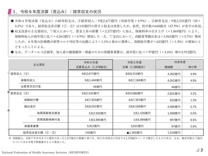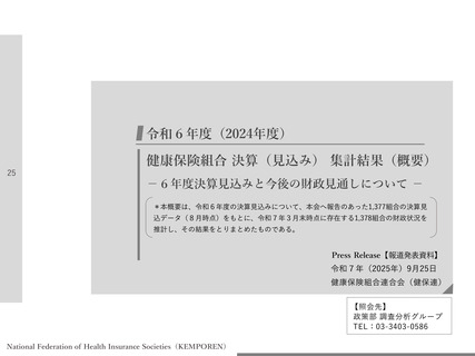 出典情報 | 令和6年度 健康保険組合 決算(見込み)集計結果(概要)(9/25)《健康保険組合連合会》 |