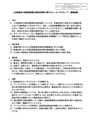 資料1_小児医療及び周産期医療の提供体制等に関するワーキンググループ 開催要綱