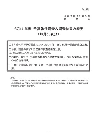 出典情報 | 予算執行調査資料 総括調査票(令和7年10月公表分)(10/3)《財務省》 |