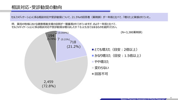 出典情報 | セルフメディケーションに係る相談対応や受診勧奨事例報告(10/6)《日本保険薬局協会》 |