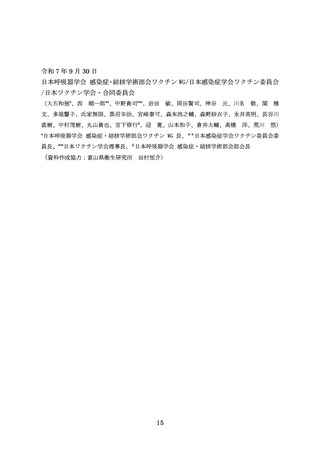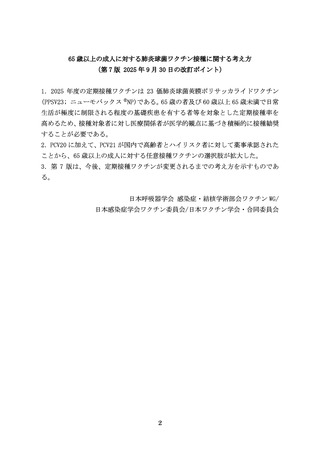 出典情報 | 65歳以上の成人に対する肺炎球菌ワクチン接種に関する考え方(第7版)(9/30)《日本呼吸器学会》 |