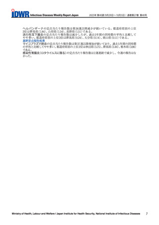 出典情報 | 感染症週報 2025年第40週(9月29日-10月5日)(10/20)《国立感染症研究所》 |