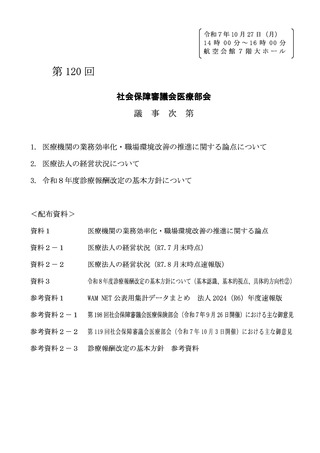 | 出典情報 | 社会保障審議会 医療部会(第120回 10/27)《厚生労働省》 |