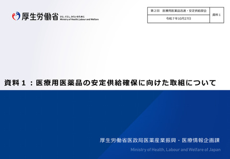 | 出典情報 | 厚生科学審議会 医療用医薬品迅速・安定供給部会(第2回 10/27)《厚生労働省》 |