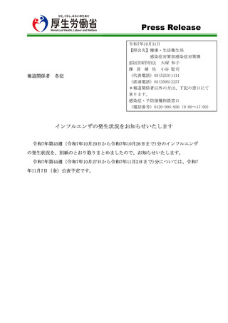 2025年 10月31日 インフルエンザの発生状況について