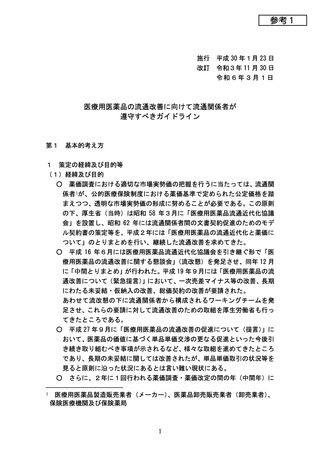 〈参考1〉医療用医薬品の流通改善に向けて流通関係者が遵守すべきガイドライン (令和6年3月1日改訂)