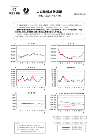 | 出典情報 | 人口動態統計速報(令和7年8月分)(10/24)《厚生労働省》 |