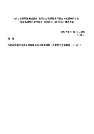 | 出典情報 | 中央社会保険医療協議会 費用対効果評価専門部会・薬価専門部会・保険医療材料専門部会 合同部会(第22回 11/12)《厚生労働省》 |