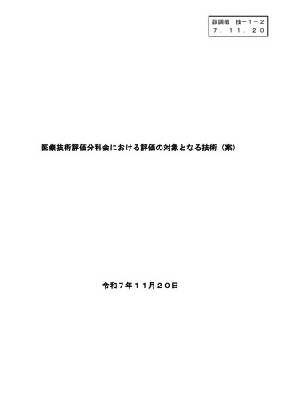| 出典情報 | 中央社会保険医療協議会 診療報酬調査専門組織 医療技術評価分科会(令和7年度第1回 11/20)《厚生労働省》 |