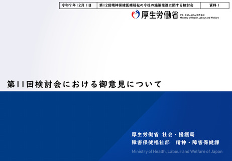 | 出典情報 | 精神保健医療福祉の今後の施策推進に関する検討会(第12回 12/1)《厚生労働省》 |