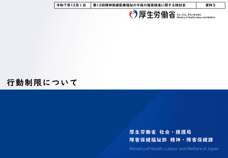 | 出典情報 | 精神保健医療福祉の今後の施策推進に関する検討会(第12回 12/1)《厚生労働省》 |