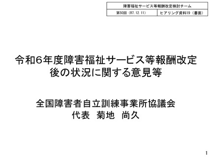 | 出典情報 | 障害福祉サービス等報酬改定検討チーム(第50回 12/11)《厚生労働省》 |