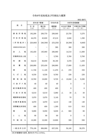 令和8年度租税及び印紙収入概算