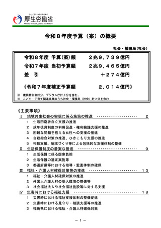 | 出典情報 | 令和8年度各部局の予算案の概要(12/26)《厚生労働省》 |