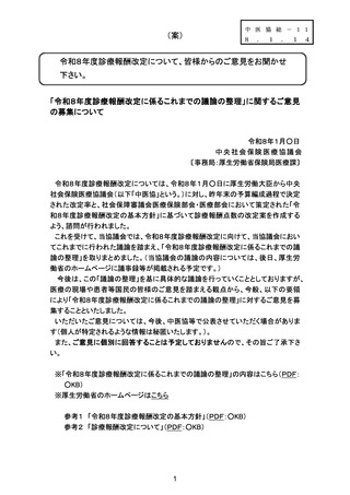 総-11 その他(「令和8年度診療報酬改定に係るこれまでの議論の整理」に関するご意見 の募集について)