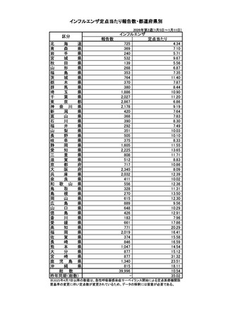| 出典情報 | インフルエンザの発生状況について(1/16)《厚生労働省》 |