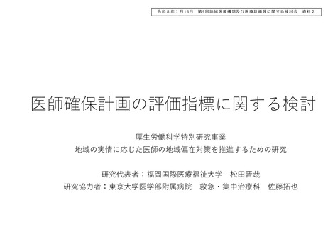 | 出典情報 | 地域医療構想及び医療計画等に関する検討会(第9回 1/16)《厚生労働省》 |