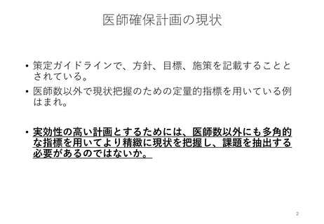 資料2 医師確保計画の評価指標に関する検討
