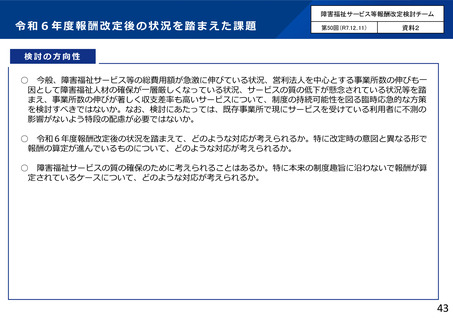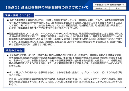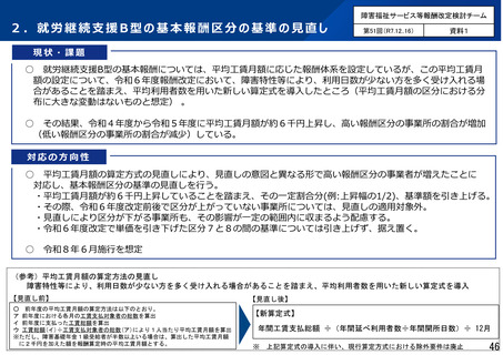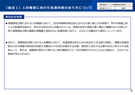 資料5 障害福祉サービス等報酬改定検討チームの議論の状況について