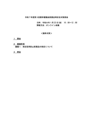 | 出典情報 | 薬事審議会 医薬品等安全対策部会(令和7年度第3回 1/23)《厚生労働省》 |