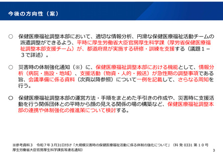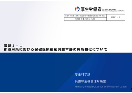 | 出典情報 | 災害時の保健・医療・福祉分野の連携強化検討会(第2回 1/26)《厚生労働省》 |