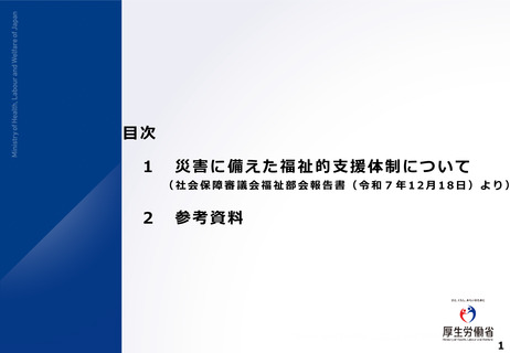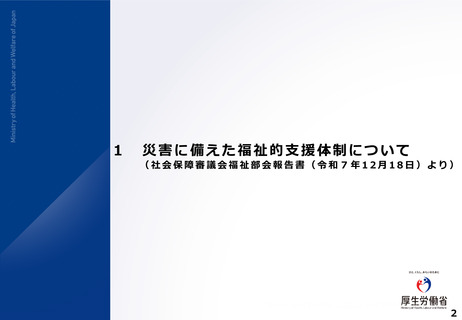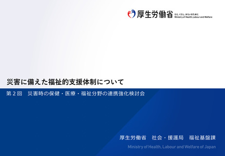 | 出典情報 | 災害時の保健・医療・福祉分野の連携強化検討会(第2回 1/26)《厚生労働省》 |