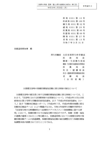 「大規模災害時の保健医療福祉活動に係る体制の強化について」大臣官房厚生科学課長他連名通知(令和7年3月 31 日)[228KB]
