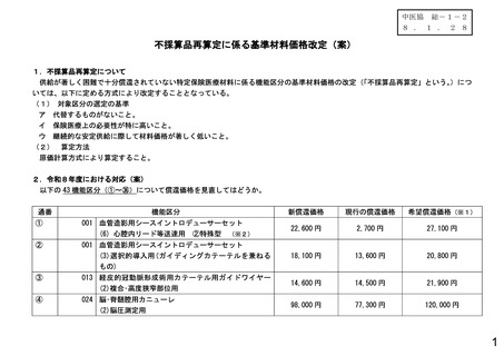 総-1ー2不採算品再算定に係る基準材料価格改定(案)