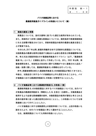 総-1バイオ後続品等における最適使用推進ガイドラインの取扱いについて(案)