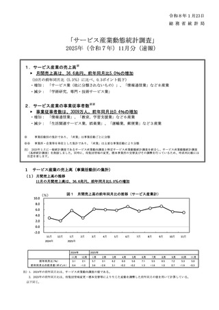 「サービス産業動態統計調査」2025年(令和7年)11月分(速報)