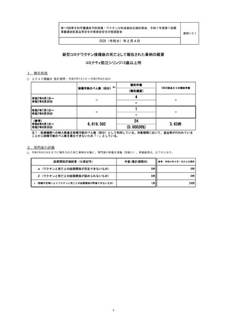 | 出典情報 | 厚生科学審議会・薬事審議会(合同開催) 予防接種・ワクチン分科会副反応検討部会(第110回 2/4)医薬品等安全対策部会安全対策調査会(令和7年度第11回 2/4)(合同開催)《厚生労働省》 |