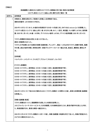 資料1-2-1 新型コロナワクチン接種後の死亡として報告された事例の概要 (コミナティ筋注シリンジ12歳以上用)[311KB]