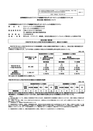 | 出典情報 | 厚生科学審議会・薬事審議会(合同開催) 予防接種・ワクチン分科会副反応検討部会(第110回 2/4)医薬品等安全対策部会安全対策調査会(令和7年度第11回 2/4)(合同開催)《厚生労働省》 |