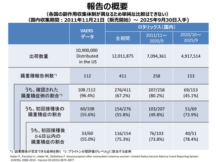 | 出典情報 | 厚生科学審議会・薬事審議会(合同開催) 予防接種・ワクチン分科会副反応検討部会(第110回 2/4)医薬品等安全対策部会安全対策調査会(令和7年度第11回 2/4)(合同開催)《厚生労働省》 |