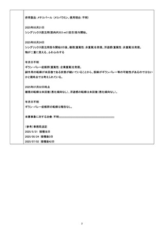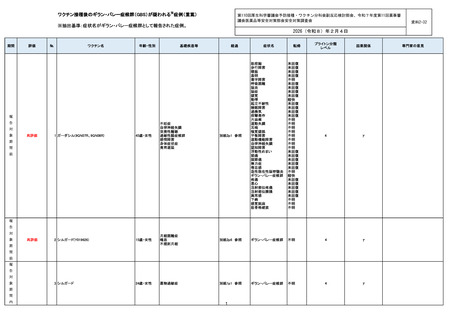 | 出典情報 | 厚生科学審議会・薬事審議会(合同開催) 予防接種・ワクチン分科会副反応検討部会(第110回 2/4)医薬品等安全対策部会安全対策調査会(令和7年度第11回 2/4)(合同開催)《厚生労働省》 |