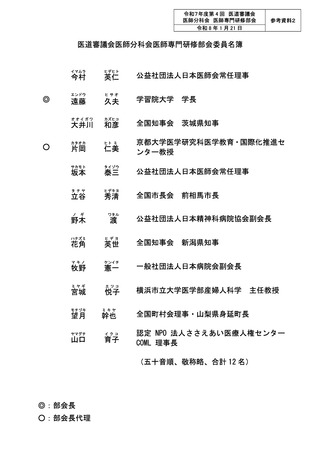 参考資料2 医道審議会医師分科会医師専門研修部会委員名簿