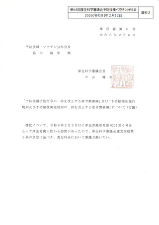 | 出典情報 | 厚生科学審議会 予防接種・ワクチン分科会(第64回 2/12)《厚生労働省》 |