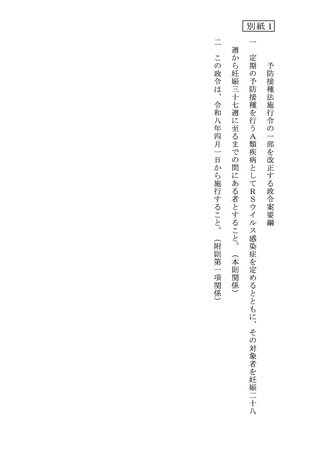 08資料2 「予防接種法施行令の一部を改正する政令案要綱」及び「予防接種法施行規則及び予防接種実施規則の一部を改正する省令案要綱」について(諮問)[141KB]