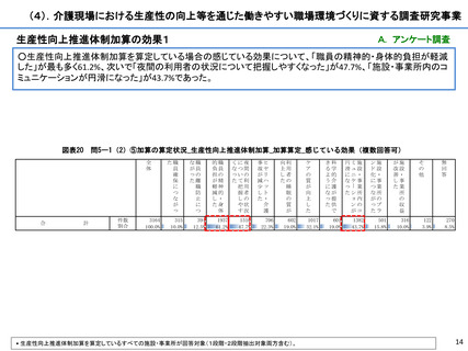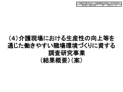 【資料1-4】(4)介護現場における生産性の向上等を通じた働きやすい職場環境づくりに資する調査研究事業(結果概要)(案)