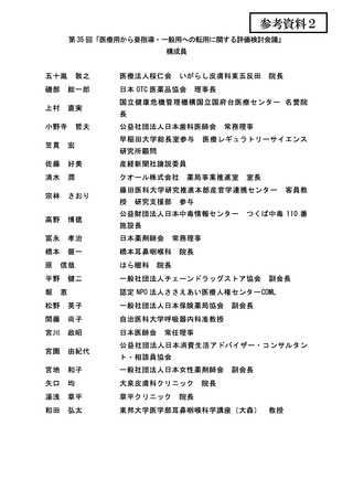【参考資料2】「医療用から要指導・一般用への転用に関する評価検討会議」構成員