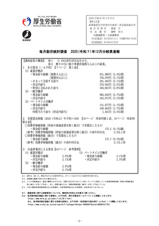 | 出典情報 | 毎月勤労統計調査 令和7年12月分結果速報(2/9)《厚生労働省》 |
